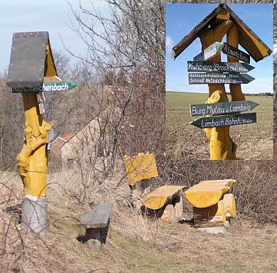 Sitzgruppe mit Wegweiser für eine Überraschung gesorgt.. |
